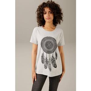 Mystisches Shirt von Aniston CASUAL. Verträumter Mandala-Frontdruck. Rundhals-Ausschnitt und kurze Ärmel. Lässig geschnittenes T-Shirt. Länge in Gr. 36 ca. 64 cm. Elastische Single-Jersey-Qualität. Unterstützt Cotton made in Africa. Baumwollmix. Maschinenwäsche.