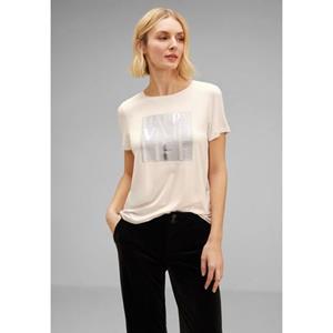 Kombistarkes Damen-T-Shirt von STREET ONE mit glitzernden Highlights. Mit einem hüftlangen und normalen Schnitt. Der Ausschnitt hat ein Rippbündchen. Durch den elastischen und weichen Jersey fühlt sich das Oberteil angenehm auf der Haut an.
