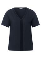 Lust auf Fashion, kein Frühling ohne ein neues Damen-T-Shirt von Street One. Dieses zeigt sich mit V-Ausschnitt, der mit Ripp Detail überrascht, besonders feminin. Der Halbarm rundet den lässigen Look ab. Die Unifarbe bietet viele Kombi-Möglichkeiten.