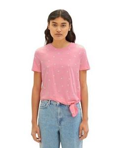 Klassisches Damen-T-Shirt von TOM TAILOR Denim mit Knoten. Es ist mit einem coolen Print versehen. Kombinierbar für sportliche Tage in der Natur. Durch die weiche Baumwolle ist das Oberteil besonders bequem.