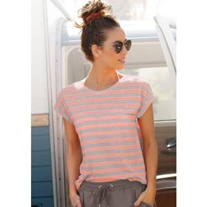 Shirt von VIVANCE mit neonfarbenen Streifen. Kurze, angeschnittene Ärmel. Länge ca. 64 cm. Aus 77% Polyester, 22% Viskose, 1% Elasthan.