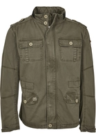 Brandit JackeModell: BRITANNIA JACKETFarbe: GrünHerstellerfarbe: OliveArtikelNr.: BD3116Obermaterial: 100% Baumwolle Futter: 100% PolyesterUsed-LookLogo Patchgroße TaschenKunstlederapplikationen am KragenStehkragensuper Tragekomfort