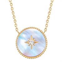 Für alle Fans besonderer Schmuckstücke mit betörendem Perlenschimmer ist diese bezaubernde Kette des Labels Valero Pearls eine gute Wahl. Im Mittelpunkt steht ein stilvolles Medaillon mit fein ziseliertem Rand und Perlmutt-Einlage. Das integrierte Stern-Ornament zaubert durch das Funkeln von facettiertem Preciosa einen dezenten Glam-Faktor in Ihr Dekolleté. Kette und Medaillon werden aus hochwertigem Edelstahl gefertigt und mit einer klassischen Gelbvergoldung veredelt. Ein praktischer Karabinerverschluss und ein Verlängerungskettchen ermöglichen die schnelle und einfache Längenanpassung. Ein perfektes Geschenk!