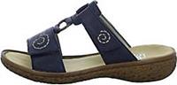 Sandalen von Rieker. Rieker - Wunderbar für die warme Jahreszeit!Zwei verstellbare Riemen über dem Rist ermöglichen ein optimales Anpassen an den Fuß.Er besteht aus weichem dunkel blauem glattem Leder.Das Innenfutter ist aus Kunstleder gefertigt und die weiche Decksohle ist aus Textil.Wie alle Schuhe aus dem Hause Rieker ist auch dieser mit einer weichen Decksohle für das Rieker ANTISTRESS Lauferlebnis ausgestattet. Die Laufsohle besteht aus Synthetik. Passend zum Gesamteindruck des Schuhs sind die Nähte dezent in der Farbe des Obermaterials gehalten.