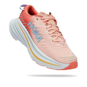 Hoka Bondi X Laufschuhe Dieser maximal gedämpfte Laufschuh bietet dir eine Karbonfaser Platte, die dich nach vorne treibt. Er bietet dir verbesserte Energierückgewinnung - Kilometer für Kilometer. Mesh Obermaterial Die Mesh Konstruktion des Obermaterials wurde für Komfort und Atmungsaktivität konzipiert und gewährleistet ein kühlendes Tragegefühl. Das Mesh schmiegt sich wie eine zweite Haut an deinen FuÃ. Darüber hinaus sorgt die Konstruktion für eine konstante Zufuhr von frischer, kühler Luft, während sie gleichzeitig warme, schwüle Luft, die sich bei intensiver Aktivität im Schuhinneren befindet, nach auÃen führt. Der Schuhkragen verwendet Memory Foam und passt sich so genau an deine Ferse für komfortablen Support. Volle EVA Zwischensohle Early-Meta-Rocker Geometrie wird in der Zwischensohle angewendet, um die Laufeffizienz zu erhöhen. Die Meta-Rocker-Mittelsohlengeometrie wurde speziell mit einem niedrigen Fersen-Zehen-Differenzial und einer geformten Laufsohle entwickelt, um einen einzigartigen Drehpunkt-Effekt zu erzeugen, wie bei einem Schaukelstuhl, um einen geführten Gangzyklus zu fördern. Dieses Design unterstützt die natürliche Form des Läufers und fördert gleichzeitig ein effizientes, gleichmäÃiges Abrollen vom ersten Auftreten bis zum Abrollen der Zehen. Beim Bondi X befindet sich die Ãbergangszone hinter dem MittelfuÃ; dies trägt zu einem sanfteren Lauf und einem schnelleren Ãbergang zum Vorfuà bei. Unter dem Fuà befindet sich eine durchgehende Plattform aus Formgepresstem EVA für eine leichte, reaktionsfreudige Dämpfung. GroÃzügig, weich und haltbar, schont sie die Gelenke, wenn deine FüÃe auf harte, unnachgiebige Oberflächen auftreffen. Eine moderate Fersenabschrägung trägt zu einem sanften Ãbergang von der Ferse zu den Zehen bei; sie verbessert den Bodenkontakt und stabilisiert und unterstützt jeden Schritt mit einer flachen Geometrie. Die Zwischensohle verwendet zudem eine Karbonfaser Platte, die für einen sanften Ãbergang im Laufzyklus sorgt. Auf diese Weise wird Energieverlust reduziert und Vortrieb erhöht. Die Meta-Rocker Technologie erhöht zudem die Laufeffizienz. Early Stage Meta Rocker AuÃensohle Die flexible und strapazierfähige AuÃensohle komplettiert den Bondi X. Der aufgeschäumte Gummi erhöht die Reaktionsfreudigkeit, Traktion sowie reboundträchtige Dämpfung. Die robuste Sohle bietet dir fantastische Kontrolle auf einer Vielzahl an Untergründen. AuÃerdem garantiert sie ein geringes Gewicht durch das AusschlieÃen überflüssigen Gummis.