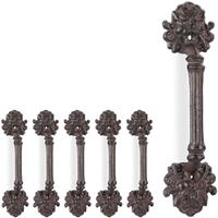 Nicht immer müssen es gleich neue Möbel sein, um die Einrichtung optisch zu verändern. Oft reicht es, dem vorhanden Mobiliar mit kleinen Veränderungen neues Leben einzuhauchen. Die Retrogriffe im 6er Pack sind dafür ideal und als Küchentürgriffe ebenso geeignet, wie als Kleiderschrankgriffe oder Schubladengriffe an der Kommode. Mit ihrem antiken Design aus Gusseisen entlocken die Bügelgriffe jedem Möbelstück einen gewissen Retro Charme und sorgen für nostalgisches Flair in Ihrer Wohnung. Möbelgriffe im Detail - Gesamtmaße H x B x T: ca. 24,5 x 6 x 4 cm - Innenmaß Griff ca. 12 x 2,5 cm - Lochabstand: ca. 159 mm - Gewicht pro Griff: ca. 350 g - Material: Gusseisen - Farbe: Braun - Im 6er Set Metall-Türgriffe für Schränke und Kommoden - Ideal, um Möbelstücken Vintage Charme einzuhauchen - Aus Gusseisen im Shabby Chic Look - Mit Löwenkopf-Ornament - Perfekt für DIY-Projekte und zum Individualisieren von Möbeln - Für Küchenschränke, Kleiderschränke, Schubladen uvm. - Auch für Schiebetüren