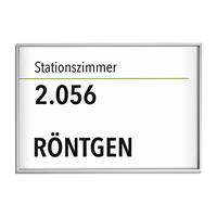 Türschild, DIN A5 quer, HxB 150,5 x 212,5 mm, verkehrsweiß. Anlieferung = vormontiert, Endmontage bauseits. Breite = 212.5 mm. Höhe = 150.5 mm. Tiefe = 6 mm. Befestigungsart = selbstklebend, zum Anschrauben. Abdeckungsmaterial = Kunststoff. Rückplattenmaterial = Aluminium. Rahmenmaterial = Aluminium. Rahmenfarbe = verkehrsweiß RAL 9016. Gewicht = 0.3 kg. Produkttyp = Türschilder. Zur Schraub- und/oder Klebemontage. Abdeckung entspiegelt (Brandklasse B1). Rückseitig mit doppelseitigem Schaumstoffkleber ausgestattet. - Sichtbare Beschriftungsfläche: 144 x 206 mm - Für Beschriftung mittels Papiereinlage im Format: 147,5 x 209,5 mm - Rückwand: silber, mit Bohrungen - Öffnungsrichtung: oben (Seite 212,5 mm)