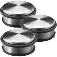 Die Türstopper sind nützliche Helfer für Ihren Haushalt. Sie verhindern das unbeabsichtigte An- und Zuschlagen von Türen. Die schwere Qualität sorgt für einen festen Stand auf allen Böden. An der Unterseite der Türstoppers ist rutschfester Gummi angebracht, der die Standfestigkeit erhöht und das Wegrutschen verhindert. Sie sind auf allen Fußböden einsetzbar. Der umlaufende Gummiring am Türstopper verhindert Beschädigungen an Ihren Türen und Möbeln. Für den Einsatz ist keine besondere Montage notwendig. Einfach an der gewünschten Stelle platzieren, und Ihre Türen sind sicher. Dank seines eleganten Edelstahl-Designs passt er sich jeder Wohnung an und ist in allen Räumen einsetzbar. Wissenswertes zum Türpuffer • Maße gesamt H x B x T: ca. 4,5 x 10 x 10 cm • Material: Edelstahl, Gummi • Gewicht: ca. 1,2 kg • Umlaufender Gummiring • Unterseite komplett gummiert Türhalter als praktisches Wohnaccessoire • Schützt Türen, Böden und Wände vor Beschädigungen • Rundum-Schutz dank umlaufendem