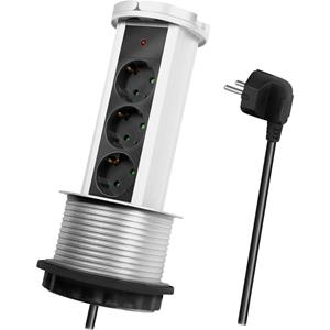 Entdecken Sie die praktische und zuverlässige 3-fach Pop-Up-Steckdose von LogiLink mit kinderfreundlichem Auf- und Abzugsmechanismus. Ideal für den Gebrauch im Büro, in Besprechungsräumen oder auf dem normalen Schreibtisch zu Hause. Sie können die Steckdose vollständig unter die Tischplatte einfahren, um ein sauberes und aufgeräumtes Erscheinungsbild zu erzielen und bei Bedarf die Steckdose mit einem einfachen Hochziehen des Griffes auf der Oberseite wieder ausfahren lassen. Schnell, einfach und platzsparend. Features: - 3x Schutzkontaktbuchsen - Passend für Computertische mit einem Kabelloch-Durchmesser von 100 mm - mit erhöhtem Berührungsschutz - mit LED-Anzeige Technische Daten: - Betriebsspannung: 250 V - Nennstrom: 16 A - Anschlussleistung: max. 3500 W - Kabelquerschnitt: 3x1,5 mm² - Kabellänge: 1,8 m - Farbe: silber/schwarz