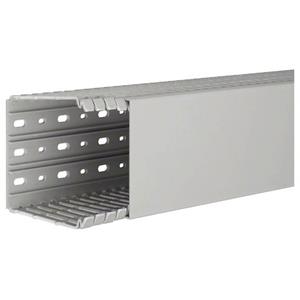 Verdrahtungskanal aus PVC BA7 100x100mm steingrau. Verdrahtungskanal bestehend aus Unterteil mit Seitenstanzung. Stege werkzeuglos bis zum Boden ausbrechbar ab Höhe 40 mm und Breite 40 mm. Eine Drahthalteklammer für alle Abmessungen inkl. Oberteil. Bodenlochung nach EN 50085