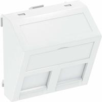 Datentechnikträger mit schrägem Auslass und Verschlussschieber zur Aufnahme von zwei Datentechnik-Anschlussmodulen mit RJ45-Buchse. Die Rastbefestigung eignet sich für den waagerechten und senkrechten Einbau in die Systemumgebung. Typ EP hat eine spezielle Modulaufnahme und ist für eine indirekte Befestigung der Daten-Anschlussmodule in der Montageöffnung ausgelegt. Datentechnikträger Typ EP ist für die Aufnahme der nachfolgenden Daten-Anschlussmodule geeignet: Leoni Kerpen: ELine 500 plus (ohne Staubschutzklappe).