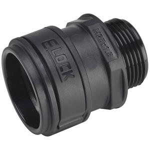 E-Lock ist eine Kunststoff-Verschraubung aus Polyamid 6, in Farbe schwarz, nicht flammenausbreitend, halogenfrei und UV-beständig.