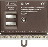 Gira Erweiterungsmodul 125900 Abbildung ähnlich. Bitte achten Sie auf die technischen Daten und die EAN des Produkts. Hersteller: Gira Bezeichnung: Erweiterungsmodul f. Einbaulautsp. Typ: 125900 Geeignet für: Außenstation Werkstoff: sonstige Gira Erweiterungsmodul 125900: weitere Details Erweiterungsmodul für Einbaulautsprecher Merkmale: Bis zu zwölf mechanische Klingeltaster anschließbar. Weitere Klingeltaster können über zusätzliche Erweiterungsmodule angschlossen werden. Es können bis zu elf Erweiterungsmodule an einen Einbaulautsprecher angeschlossen werden. Wechselspannungsabfrage der Klingeltasten-Anschlüsse zur Vermeidung von Oxidation an den Tastenkontakten. Kleine Bauform. Absicherung der Anschlussklemmen gegen Falschanschluss. Befestigung des Erweiterungsmodules durch Schrauben oder Kleben. Hinweise: Modul zur Erweiterung des Einbaulautsprechers, wenn mehr als acht mechanische Klingeltaster angeschlossen werden sollen. Mit dieser Komponente ist der Aufbau von