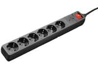 Beschreibung Zum Anschluss von bis zu sechs elektrischen Verbrauchern und zum Schutz der angeschlossenen Geräte vor Überspannung durch z.B. indirekten Blitzeinschlag. Mit Überspannungsschutz und Funktionskontrollanzeige. Beleuchteter, 2-poliger Ein-/Ausschalter. Die Steckdoseneinsätze sind um 45° gedreht. Technische Daten Betriebsspannung: 230 V Kabellänge: 1.40 m