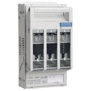 Sicherungslasttrennschalter LT NH00 160A,Rahmenklemme 95mm², Hutschiene. NH00-Sicherungslasttrennschalter für Montageplatte bzw. Hutschienenmontage nach DIN EN 60947-3 (VDE 0660-107) und geeignet für NH-Sicherungseinsätze nach DIN 43620/1. Bestehend aus 3-poligem Schalterunterteil und plombierbarem Griffeinsatz, Berührungsschutz am Griff, mit verschiebbarem Klarsichtfenster zur Spannungsprüfung, allpolig schaltend, zur Montage auf Hutprofilschiene oder Montageplatte ohne zusätzliche Blende.