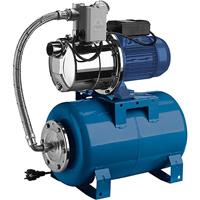 Edelstahl-Hauswasserwerk GP-JEXM 120-24 Vollautomatisches, steckerfertig montiertes Hauswasserk mit Membranbehälter, Druckschalter, Manometer und Flexschlauch. Pumpengehäuse, Laufrad, Welle und Dichtungsträger aus Edelstahl. Mit wartungs- und leckfreier Gleitringdichtung. Speziell für Dauerbetrieb geeignet. ● Selbstansaugendes Hauswasserwerk komplett aus robuster Industriequalität ● Mit aufgebautem Kompakt-Druckschalter für automatischen Betrieb ● Mit 24-l-Membrangefäß für geringere Schaltintervalle ● Zur Förderung von klaren Medien ● Dauerbetriebsfest ● Mit robuster Gleitringdichtung ● Motor mit integriertem Thermoschutzschalter ● Inklusive 1,5 m Netzkabel mit Stecker ● Einsatzgebiete: Druckerhöhung, Bewässerung, Wasserversorgung, Regenwassernutzung weitere Info's: Leistung: 1390 W Max. Fördermenge: 4300 l/h Max. Druck: 5,0 bar Max. Ansaughöhe: 8 m Max. Förderhöhe: 50 m Für Anzahl Regner (max.): 3 Saugdruckleitung Ø: 1.1/4" Druckkessel: 24 l Gewicht ca.: 23 kg