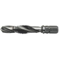 Kombi-Bit - Metrisches ISO-Gewinde DIN 13 - HSS - Toleranz ISO 2 6H - Durchgangsloch - 1/4"-Bitschaft (DIN 3126) Vorteil: Zum Kernlochbohren, Gewindeschneiden und Entgraten in einem Arbeitsgang. Hinweis: Kombi-Bits sind für das Gewindeschneiden mit Akku-Bohrmaschinen und Handbohrmaschinen mit Rechts- und Linkslauf konzipiert. Sie eignen sich aber auch für das Gewindeschneiden auf stationären Bohrmaschinen. Es können nur Durchgangsgewinde bis zu einer maximalen Gewindetiefe von 1 x D gefertigt werden. Besonders geeignet für Montagearbeiten und Kleinserien. Achten Sie darauf, dass Werkzeugachse und Lochachse genau fluchten, und verwenden Sie ein geeignetes Schneidöl. Technische Daten: Gesamtlänge: 41 mm Stahl