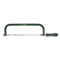 Der Metallsägebogen ist eine Bügelsäge. Mit ihm werden Werkstoffe spanend getrennt sowie Schlitze und Einschnitte in Werkstücken hergestellt. Er wird meist bei der Metallbearbeitung an der Werkbank und bei Montagearbeiten verwendet, wenn der Einsatz von Sägemaschinen zu aufwendig oder nicht möglich ist. Die Bügelsäge für Metall besteht aus dem Sägebogen und dem Sägeblatt.Länge: 300 mm 18 x 8 mm Stahl mit Holzgriff Hochleistungsschnellschnittstahl (HSS) - Sägeblatt