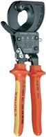 VDE-isoliert · bis 1000 V · zum Schneiden von Cu- und Al-Kabeln · ein- und mehrdrähtig · nicht für Stahldraht und Drahtseile geeignet · Einhandbetätigung durch optimale Hebelübersetzung und Ratschenprinzip · einfache Handhabung durch geringes Gewicht und kompakte Bauweise - Einsatz auch unter beengten Platzverhältnissen möglich · gehärtete Schneiden mit Präzisionsschliff · schneidet glatt und sauber ohne zu quetschen · Griffe mit ergonomischen 2-Komponenten-Hüllen mit Abgleitschutz