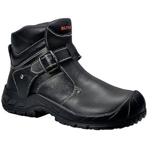 nach DIN EN ISO 20345 · S3 HI SRC HRO · Form B · Obermaterial: Rindleder · Schnellverschluss, individuelle Lascheneinstellung durch zusätzliche Schnalle · hitzebeständige Nähte · Lederfutter · geschlossene Lasche · Stahlkappe · gepolsterte Funkenschutzmanschette · ganzflächige Einlegesohle Basic grey · Stahlzwischensohle · antistatische Softvlies-Brandsohle · grobstollige GUMMI/PU-Sohle SAFETY-GRIP · PU-Spitzenschutz · DGUV 112-191 Zertifizierung Weitere technische Eigenschaften: · Zehenschutzkappe: Stahl · Zwischensohle: Stahl · Ausführung: Schnellverschluss · Norm: EN ISO 20345