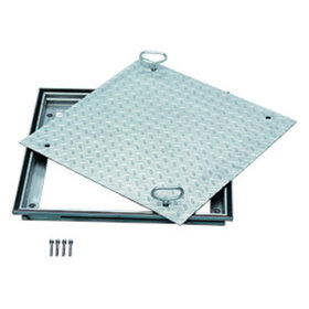 Schachtabdeckung Stahl verzinkt 800 x 800 mm Perfekte Optik durch bauseitige Füllung der Deckelwanne mit dem gleichen Material wie der übrige Bodenbelag (Platten, Fliesen, Teppichboden, Pflastersteine). EPDM-Dichtung (benzolbeständige Dichtung auf Anfrage). Hochwertige Strangpress-Profile. Griffpaar aus Edelstahl, bestehend aus einem selbstabhebenden Öffnungsgriff und Aushebegriff. Geruchs- und tagwasserdicht. Konische Profilkonstruktion, daher leicht zu öffnen. Kein Verklemmen. Mehrfachverschraubung. (Anzahl größenabhängig) Belastung: Prüfkraft 125 KN (=12,5 t), nur nach Befüllung der Deckelwanne bauseitig mit Beton B 45 (Körnung 0-8). Schachtmaß, lichte Weite (LW) 800 x 800 mm Schachtmaß, Außenmaß (AM) 960 x 960 mm