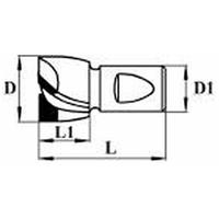 Zapfensenker - Gr. 2 - Senk-Durchm. Ø 24,0-66,0 mm - Gesamtlänge 60,0 mm - Schaft-Durchm. Ø 22,0 mm - Kopflänge 27,0 mm - Schaftlänge 33,0 mm - Bohrungs-Durchm. Ø 10,0 mm Bis Senk-Durchm. Ø 85 mm auf Anfrage lieferbar. Vierschneidig Technische Daten: Senk-Durchm. Ø K8: 47,0 mm Gewicht: 274 g
