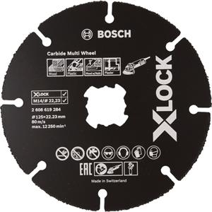 Bosch Ø 125mm X-LOCK Trennscheibe Carbide Multi Wheel | Hersteller-Nr.: 2608619284 | EAN: 3165140959230 | Produkttyp: Sale | Für Winkelschleifer mit X-Lock Aufnahme Carbide Multi Wheel Sicheres Schneiden von Holz (mit Nägeln) Kunststoff und Trockenbaumaterialien mit dem Winkelschleifer Technische Daten Durchmesser mm 125 Bohrungsdurchmesser mm 2223 Dicke mm 10 U/min (Maximaldrehzahl) 12.250 X-LOCK ja Spezifikation 125 mm 1 mm | Kategorie: Sale