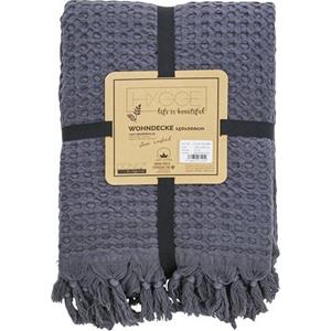 Leichte Wohndecke aus reiner Baumwolle mit handgeknoteten Fransen an den kurzen Seiten. Die Decke mit angesagter Waffelstruktur wurde in der Herstellung mit Steinen gewaschen (stone-washed) und erhält so einen gebrauchten, etwas ausgeblichen Look. In deinem Zuhause setzt sie tolle Design-Akzente und sorgt für kuschelige Momente.