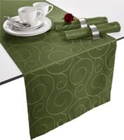 "Erwin Müller Damast Tischläufer ""Oberhausen"". Sehr ausdrucksstark sind die eingewebten Ranken. Eine schöne, beständige Jacquard-Qualität, die mit Kuvertsaum gearbeitet ist. Pflege- und bügelleicht dank des Polyester-Anteils. Weitere Hinweise Serie Oberhausen im Uni Design im Ranken-Design Material: 60% Baumwolle , 40% Polyester Waschen 60°, Trocknen niedrige Temperatur, Bügeln mittel"