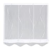 Das Raffrollo Kirk ist mit seiner transparenten Voile Grundware der perfekte modische Accessoires für Ihren Wohnbereich. Durch die feine, hochwertige Stickerei im Wellendesign verleiht es Ihrem Einrichtungsstil das gewisse Etwas. Das Raffrollo wird mit Hilfe eines Flausch- und Klettbandes an Ihrem Fensterrahmen oder eine Blende befestigt. Durch den mitgelieferten Beschwerungsstab hat das Raffrollo einen schönen und elegeganten Fall und kann mit Hilfe eines Feststellers an der gewünschten Höhe fixiert werden.
