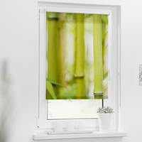 Bambus ist eine sehr elegante Pflanze, die nicht nur in asiatischen Gefilden eine gute Figur macht. Wer das Exotische Flair für seine Wohnung sucht, kann unser Rollo ‘ Bambus’ herrlich in seinen Wohnstil integrieren. Holen sie sich ein Stück Natur in ihre vier Wände und genießen Sie den fernöstlichen Touch, der Ruhe und Entspannung ausstrahlt.Bei einem Rollo handelt es sich um einen textilen Stoff, der über eine Welle aus Metall auf- und abgewickelt werden kann. Rollos schaffen durch ihre Beschaffung stets Gemütlichkeit und somit ein wohnliches Raumbild. Dieser Stoff hat die Eigenschaften Sicht- und Blendschutz, Sonnenschutz sowie Verdunkelung. Die Rückseite wurde weiß beschichtet, um einen Verdunklungsgrad von 100% zu erreichen.Die Besonderheit dieses Rollos liegt in der unkomplizierten Montage - ohne Bohren direkt am Fenster - mit Hilfe der mitgelieferten Klemmträger. Es müssen keine Löcher gebohrt werden und es ist auch kein weiteres Werkzeug notwendig! Das Rollo wird einfach mit Hilfe des Klemmträgers direkt auf den Fensterrahmen gehängt. Weitere Montagemöglichkeiten sind die Deckenmontage, Wandmontage oder Nischenmontage. Die Bedienung erfolgt über eine Endloskette, welche das Rollo in jeder gewünschten Höhe anhalten lässt. Dieser Kettenantrieb ist absolut wartungsarm und lange haltbar. Der Schnurzug kann wahlweise links oder rechts montiert werden. Der Lieferumfang besteht aus Seitenzugrollo, Montageanleitung, Zugschnur, zwei Klemmträgern sowie weiterem Montagezubehör für die Wand- und Deckenmontage. Bitte beachten:Der Ausschnitt des Motivs variiert je nach Stoffbreite. Es müssen immer zwei bis drei Umwicklungen auf der Rollo-Welle verbleiben, da der Stoff an der Welle verklebt ist. Wird das Rollo komplett abgelassen, kann es vorkommen dass sich der Stoff von der Welle löst. Die angegebene Länge ist jedoch immer gewährleistet. Die maximale Tiefe des Fensterrahmens darf 2,5 cm nicht überschreiten und 1,6 cm nicht unterschreiten (ohne Dichtung), da der Klemmträger nur in diesem Bereich verstellbar ist.Der Stoff ist ca. 4 cm schmaler ist als die angegebene Bestellbreite!Der Stoff kann feucht abgewischt werden und ist zudem geprüft nach Öko-Tex Standard 100.