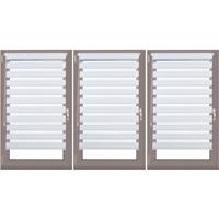 Die Doppelrollos Klemmfix sind ideal für dreiflügelige Fenster oder für drei einzelne Fenster. Dabei sind sie nicht nur schick, sondern multifunktional. Die unterschiedlich dicht gewebten Streifen sind lichtdurchlässig und blickdicht zugleich. Je nachdem, wie die Rollos positioniert werden. Entscheiden Sie sich für einen leichten Sichtschutz mit viel Tageslicht oder geschützter Privatsphäre. Durch die Kette lassen sich die Seitenzugrollos einfach und schnell bedienen. Eingerollt fallen die Duo-Rollos kaum auf. Die praktische Klemmfix-Vorrichtung ermöglicht ein Anbringen ohne Bohren. Achtung: Kette straff an der Wand befestigen, um das Strangulationsrisiko für Kinder und Tiere zu minimieren. Größen der Duo-Rollos • B x H: ca. 80 x 156 cm • Stoffmaß ca. 4 cm schmaler • Farbe: Weiß • Material: Aluminiumrohr und Polyester • Kette und Halterung aus Kunststoff Doppelrollo Klemmfix im Detail • Für Fensterrahmen bis max. 2,8 cm • Streifen transparent ca. 5 cm breit • Streifen blickdicht ca.
