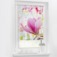 Sonnenschutz & Fensterdekoration mit Motivrollos Lichtblick.: Kaum eine andere Pflanze zieht im Frühjahr die Blicke so magisch auf sich wie die Magnolie, und wo Magnolien blühen, ist der Frühling mit Sicherheit gleich um die Ecke. Die zartrosafarbene, üppige Blütenpracht in ihrer schönsten Vielfalt gibt es jetzt auch als Rollo für Ihr Fenster. Mit dieser Fensterdekoration heißen Sie den Frühling in Ihrer Wohnung herzlich willkommen und hüllen Ihr Zuhause in duftige Farbnuancen. Bei einem Rollo handelt es sich um einen textilen Stoff, der über eine Welle aus Metall auf- und abgewickelt werden kann. Rollos schaffen durch ihre Beschaffung stets Gemütlichkeit und somit ein wohnliches Raumbild. Dieser Stoff hat die Eigenschaften Sicht- und Blendschutz, Sonnenschutz aber lichtdurchlässig zugleich zu sein. Die Besonderheit dieses Rollos liegt in der unkomplizierten Montage - ohne Bohren direkt am Fenster - mit Hilfe der mitgelieferten Klemmträger. Es müssen keine Löcher gebohrt werden und es ist auch kein weiteres Werkzeug notwendig! Das Rollo wird einfach mit Hilfe des Klemmträgers direkt auf den Fensterrahmen gehängt. Weitere Montagemöglichkeiten sind die Deckenmontage, Wandmontage oder Nischenmontage. Die Bedienung erfolgt über eine Endloskette, welche das Rollo in jeder gewünschten Höhe anhalten lässt. Dieser Kettenantrieb ist absolut wartungsarm und lange haltbar. Der Schnurzug kann wahlweise links oder rechts montiert werden. Der Lieferumfang besteht aus Seitenzugrollo, Montageanleitung, Zugschnur, zwei Klemmträgern sowie weiterem Montagezubehör für die Wand- und Deckenmontage. Bitte beachten: Der Ausschnitt des Motivs variiert je nach Stoffbreite. Es müssen immer zwei bis drei Umwicklungen auf der Rollo-Welle verbleiben, da der Stoff an der Welle verklebt ist. Wird das Rollo komplett abgelassen, kann es vorkommen dass sich der Stoff von der Welle löst. Die angegebene Länge ist jedoch immer gewährleistet. Die maximale Tiefe des Fensterrahmens darf 2,5 cm nicht überschreiten und 1,6 cm nicht unterschreiten (ohne Dichtung), da der Klemmträger nur in diesem Bereich verstellbar ist. Der Stoff ist ca. 4 cm schmaler ist als die angegebene Bestellbreite!