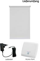 Sonnenschutz der neuen Generation – motorisiert, modern, einfach. So individuell, so smart! Mit dem Akkurollo smarthome Sunlines powerd by Homematic IP können Sie nun via Smartphone auch Ihren Sonnenschutz an Ihre Bedürfnisse anpassen. Das Rollo kann mittels der einfachen und intuitiv zu bedienenden App gesteuert werden. Diese steht Ihnen sowohl im App Store als auch im Google Play Store kostenfrei zum Download zur Verfügung. Die App ermöglicht ein stufenloses hoch- und runterfahren sowie das Speichern verschiedener Zeit- und Szenenvarianten. Ausgerüstet mit Sensoren für die Helligkeit und innovativer kabelloser Antriebstechnik wird Ihr Sonnenschutz leise und energiesparsam in jede gewünschte Position gebracht. Für noch mehr Komfort gehorcht Ihr Sonnenschutz auch auf Kommandos an die Sprachassistenten Amazon Alexa und Google Assistant. Das in Deutschland produzierte Akkurollo mit weißem Fallstab ist eine tolle Dekoration am Fenster, da es in unterschiedlichen Farben gewählt werden kann. Gleichzeitig schützt es vor neugierigen Blicken. Einmal aufgeladen, hält der integrierte Akku bei täglich einem herunter- und hochfahren ca. ein halbes Jahr. Ist der Akku leer, dauert es ca. 4 Stunden bis dieser seine volle Ladekapazität erreicht hat. Für die Steuerung benötigen Sie zudem den ebenfalls enthaltenen Homematic IP Access Point. Dieser ist das zentrale Element des Homematic IP Smart Home Systems. Er verbindet über die Homematic IP Cloud das Smarthpone mit den Homematic IP Geräten. Zu diesem Sortiment gehören nicht nur unsere smarten Akkurollos, sondern vielfältige Einsatzmöglichkeiten in den Bereichen Sicherheit und Alarm, Raumklima und Heizungssteuerung, Wetter und Umwelt sowie Lichtsteuerung. Dadurch kann das System jederzeit zu einer vollumfassenden Smart-Home-Lösung ausgebaut werden. Die im Lieferumfang enthaltene Montageleiste ermöglicht eine einfache und zeitsparende Anbringung. Sie benötigen hierzu nur eine Wasserwaage, um das Rollo gerade ausrichten zu können. Mittels Clips können Sie das Rollo im Anschluss an in die Montageleiste klicken. Hinweis: Sie benötigen für mehrere Rollos dieser Serie nur ein einziges Ladekabel. Sollten Sie Kabel oder Access Point benötigen, können Sie dieses unter "Ausführung" auswählen.